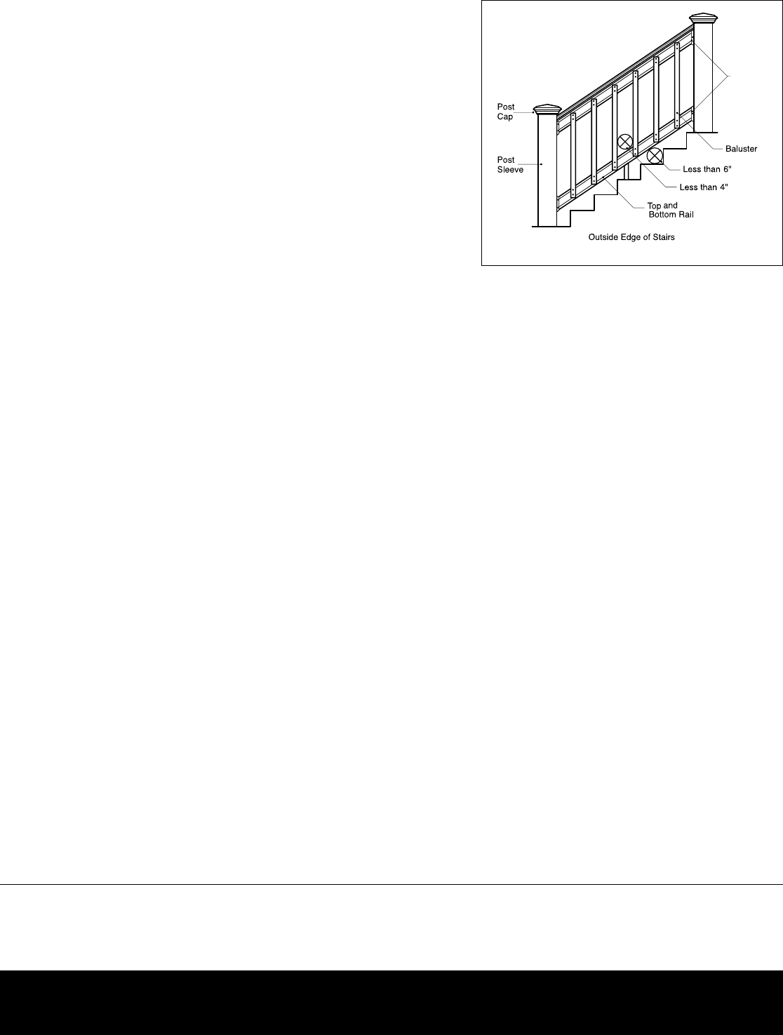 holes in the top and bottom rails. Drill and attach baluster with the screws provided.