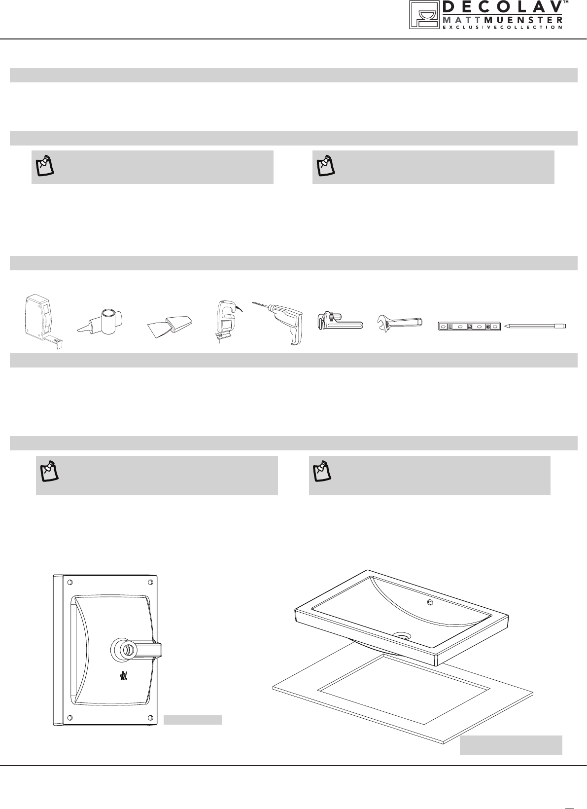 • Unpack your new DECOLAV product and inspect it for damage. Keep the product in its original package until you are ready to install it