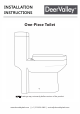 Putty Knife Water Supply Kit Wrench Tape Measure Flat Head Screwdriver Level Cross Screwdriver Push button, tank lid, water fitting, soft-close toilet seat, bolts kit, wax ring, installation instruction. The step-by-step guidelines in the installation instructions are a general reference for installing a DeerValley One-Piece Toilet. Should there be any discrepancies, DeerValley cannot be held liable. It is recommended to install all DeerValley Products by hiring a licensed professional. 1.