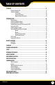 TABLE OF CONTENTS TABLE OF CONTENTS............................................................................................... 1 INTRODUCTION..................................................................................................... 3 WHAT IS INCLUDED................................................................................................ 3 FEATURES............................................................................................................. 4 OPTIONAL ACCESSORIES........