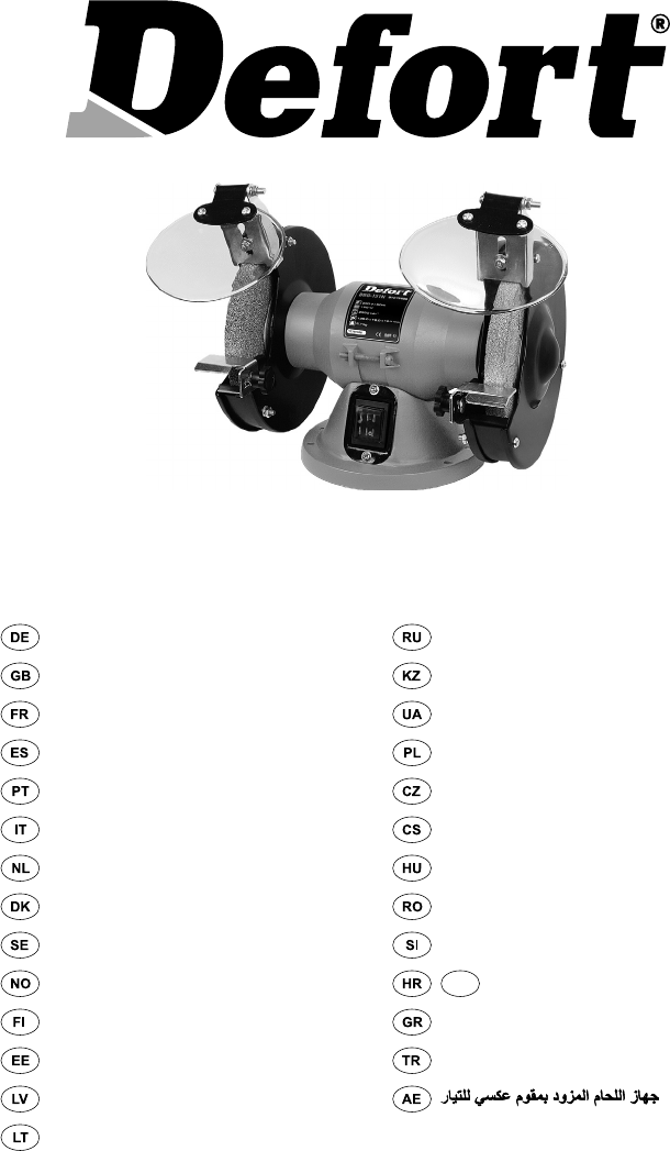 SE Svenska • Slipmaskinen måste vara ordentligt fastskruvad på arbetsbänken. Bultarnas längd beror på arbetsbänkens tjocklek. Om arbetsbänken är av stål rekommenderar vi att du använder en träkloss eller –planka mellan slipmaskinen och bänken för att isolera den och förhindra vibrationer. Bänkslipmaskine TEKNISKA DATA 1 STÄNG OMEDELBART AV MASKINEN NÄR: • Kontakten eller nätsladden är defekt eller skadad. • Strömbrytaren är defekt. • Du känner lukten av rök eller brinnande isolering.