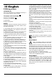 English ● Take protective measures when during work dust can develop that is harmful to one’s health, combustible or explosive (some dusts are considered carcinogenic); wear a dust mask and work with dust/chip extraction when connectable ● Always disconnect plug from power source before making any adjustment or changing any accessory WHEN CONNECTING NEW 3-PIN PLUG (U.K.