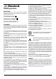 PL Polski ● Do pracy należy nosić dopasowane ubranie, nakrycie głowy (w przypadku długich włosów) oraz korzystać z rękawic i okularów ochronnych ● W przypadku, gdy podczas pracy elektronarzędzia powstają szkodliwe dla zdrowia, łatwopalne lub wybuchowe pyły, należy zastosować odpowiednie środki ochronne (na przykład niektóre pyły są rakotwórcze); zaleca się używanie maski przeciwpyłowej, a po zakończeniu pracy odsysanie pyłu i wiórów ● Przed przystąpieniem do wykonywania jakichkolwiek czynności obsługowych