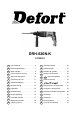 LV Latviešu Vajag nekavējoties izslēgt instrumentu gadījumā, ja: - aizķīlē uzgalis; - kabeļa, dakšas vai rozetes ir bojātas; - bojāts slēdzis; - ir pārmērīga slotiņas dzirksteļošana un uguns rašanās uz kolektora virsmas; Elektriskais perforators IEVADS Dotais instruments ir paredzēts triecien urbšanai betonā, ķieģelī un akmenī. Uzstādot atbilstošu uzgali, instrumentu var pielietot urbšanai kokā, metālā un plastmasās, kā arī skrūvju ieskrūvēšanai un izskrūvēšanai.