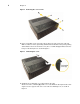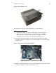 4 Chapter 2 Figure 2 Removing the cover screws 4. Place your thumbs on the top surface above where the end screws were removed. With a continuous motion, push firmly downward and towards the back panel (pushing down unlatches the hooks under the cover). The cover will shift approximate 1/4 inch to hang over the back panel, as shown in Figure 3. Figure 3 Unlatching the cover 5.