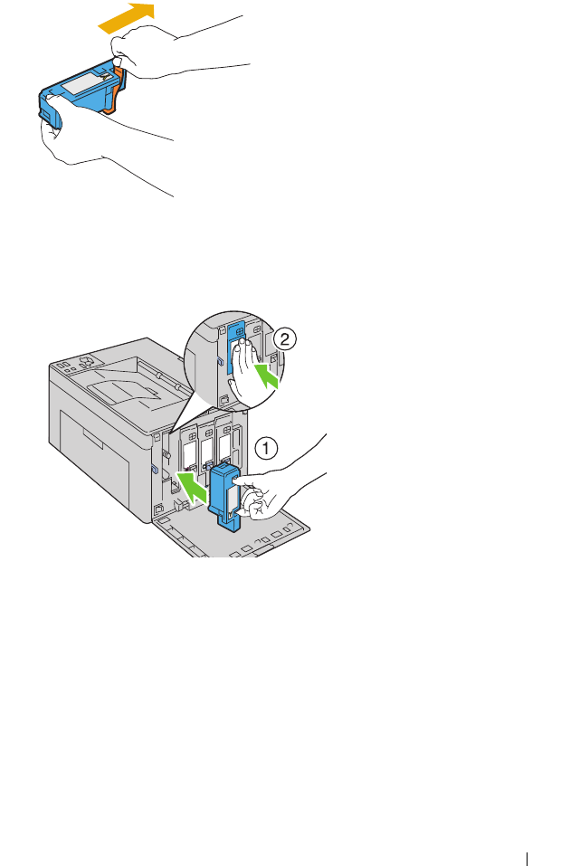 Juster tonerpatronen med den tilhørende patronholder, og indfør den fast