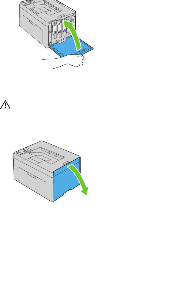 Bekræft, at printeren ikke kører, og åbn toneradgangsdækslet.
