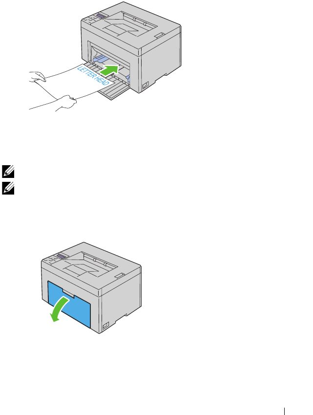 utskriftssiden vendt ned når papir legges i selve MPF.