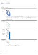 情報とその入手先 必要な情報 プリンタド ライバ ユーザーズ ガイド 入手先 Drivers and Utilities CD デル製のコンピュータとプリンタを同時にご購入いただいた場合には、マニュアルおよびドライバはコンピュータにイ ンストールされています。 ドライバをアンインストール/再インストールしたり、説明書類を参照したりするときに、 この Drivers and Utilities CD を使用します。 CD には Readme ファイルが含まれている場合がありま す。Readme ファイルには、プリンタの技術的な変更に関する最新情報や、熟練ユーザーや技術者のための高度な技 術資料が示されています。 プリンタのセッ トアップ方法 安全に関す る情報 プリンタの セットアッ プ方法と使 用方法 保証に関す る情報 エクスプレス サービスコード とサービスタグ ナンバー プリンタのセットアップ図解 オーナーズマニュアル エクスプレスサービスコードとサービスタグナンバー 以下の図は、プリンタのラベルの位置を示しています。