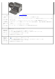 トラブルシューティング 基本的な問題 印刷品質の問題 エラーの回復 サービスへの問い合わせ 基本的な問題 印刷時に発生した問題の解決方法については、以下の情報を参考にしてください。 問題を解決できない場合は、デルのサポート (support.dell.com)に問い合わせてください。 プリンタのパーツによっては、サービス技術者がクリーニングや交換を行う必要がありま す。 印刷が薄くなってきたが、[トナー残少/ドラムを交換]ランプが点灯しない 1. トナーカートリッジを取り外します。 2. カートリッジを前後左右に数回よく振って、トナーの偏りをなくします。 3. トナーカートリッジを再度挿入し、印刷を続行します。 印刷の色が薄い状態が続くようになるまで、この手順を何度か繰り返します。 印刷の色が薄い状態が続くようになったら、トナーカート リッジを交換します [トナー残少/ドラムを交換]ランプが点灯する(点滅はしない) 1. トナーカートリッジを取り外します。 2. カートリッジを前後左右に数回よく振って、トナーの偏りをなくします。 3.