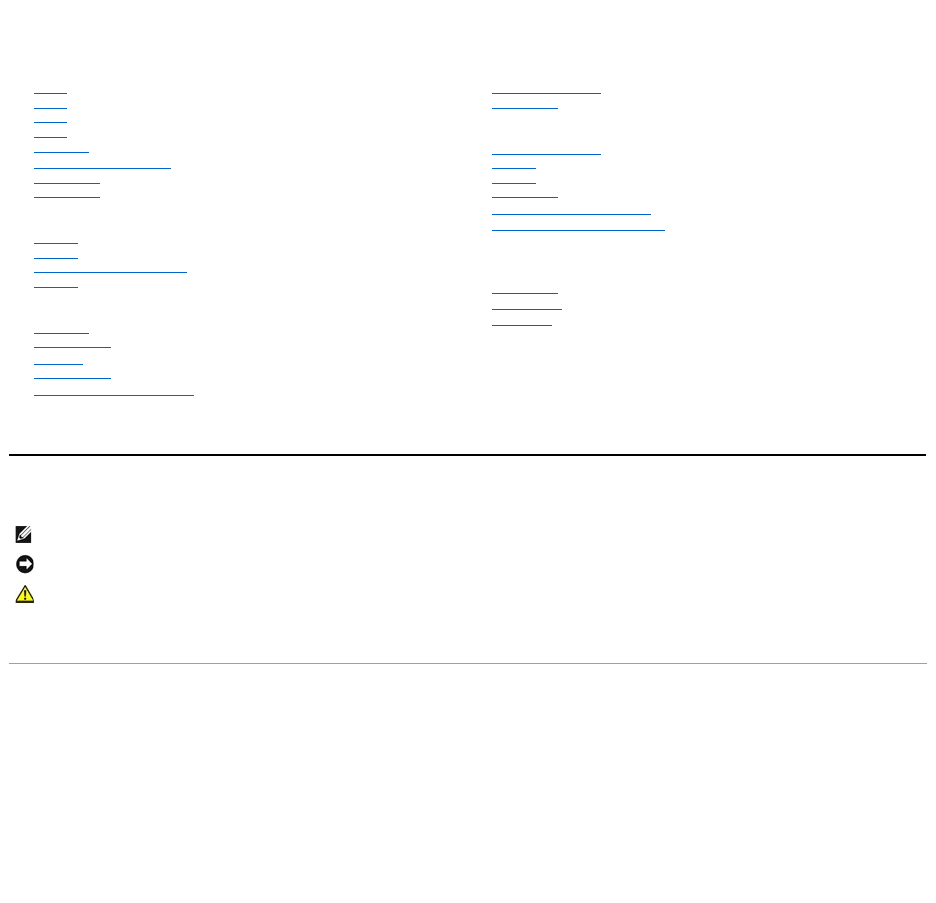 Dell™ 2007FP 平面顯示器 關 於您的顯示器 正視圖 背視圖 側視圖 底視圖 顯示器規格 通用序列匯流排 (USB) 介面 隨插即用功能 顯示器的保養 使用可調整的顯示器底座 連接底座 整理纜線 使用傾斜、旋轉和垂直延伸功能 移除底座 設定顯示器 連接顯示器 使用前面板按鈕 使用 OSD 設定最佳解析度 使用 Dell™ Soundbar(選購) 旋轉顯示器 變更顯示器的旋轉角度 旋轉作業系統 解決問題 顯示器特定之疑難排解 常見問題 視訊問題 產品特定問題 通用序列匯流排 (USB) 特定問題 Dell™ Soundbar (選購) 疑難排解 附錄 FCC辨識資訊 警告:安全指示 與 Dell 連絡 註,注意和小心 註: 註標記代表可協助您更善加利用電腦系統的重要資訊。 注意:注意標記代表可能會造成硬體受損或有資料流失的可能,並告訴您要如何避免這類問題。 小心: 小心標記代表會造成實際傷害,並告訴您要如何避免這類問題。 某些警告訊息可能以上述以外的格式出現,且未加上圖示標記。 在這種情況下,這類小心的特殊表示方式是由立法機構強制要求履行。 本 指 南 的內容如有變更,恕不另行 通