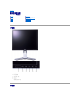 左側 1 USB 下游埠 底視圖 1 AC 電源線連接器 2 DVI 連接器 3 VGA 連接器 4 複合視訊連接器 5 S 視訊連接器 6 USB 上游埠 7 USB 下游埠 8 用於 Dell™ Soundbar 的 DC 電源連接器 顯示器規格 一般規格 機型號碼 2007FP