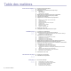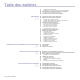 Table des matières 2 5 Fonctionnalités de votre nouveau produit laser Informations en matière de sécurité INTRODUCTION 12 12 12 13 14 14 15 16 16 16 17 Vue d’ensemble de l’imprimante Vue avant Vue arrière Vue d’ensemble du panneau de commande Signification des voyants Statut Contrôle de l’état des cartouches de toner Structure des menus Logiciel fourni Fonctions des pilotes d’impression Pilote d’impression Pilote PostScript PRISE EN MAIN 18 18 18 18 19 19 19 19 20 20 20 21 21 22 22 22 22 22 23 23 23 2