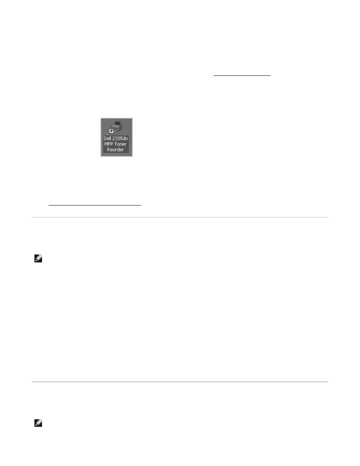 Page 1 of 52 Dell™ 2335dn MFP User's Guide Click the links to the left for information on the features, options, and operation of your printer. For information on other documentation included with your printer, see "Finding Information". To order replacement toner cartridges or supplies from Dell: 1. Double-click the Dell 2335dn MFP Toner Reorder icon on your desktop. OR 2. Visit Dell's website, or order Dell printer supplies by phone. http://www.dell.