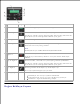 Kullanın Simge Bunun için 1 Ekran Yazdırılacak kopya sayısını ve hata kodlarını gösterir. 2 Sol ok düğmesi Ekranda menüler, alt-menüler ve ayarlar içinde gezinmek için kullanılır. Önceki veya sonraki seçeneğe gitmenizi sağlar. Her basıldığında listede bir öğe ilerletir veya bir menü öğesinde farklı bir ayara gider. 3 Geri düğmesi Önceki ekrana geri döner. 4 Menü düğmesi Menüyü açar. Menülerdeyken menü düğmesine basıldığında kullanıcı menü ekranının en üst seviyesine geri döner.