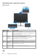 Przycisk na panelu przednim Użyj przyciski z przodu monitora do regulacji ustawień obrazu. Przycisk‑ na panelu przednim 1 W górę Opis Użyj przyciski W górę (zwiększenie) i W dół (zmniejszenie) do regulacji elementów w menu OSD. W dół Użyj przycisk Poprzednie w celu przejścia z powrotem do poprzedniego menu. 2 Poprzednie Użyj przycisk Dalej w celu przejścia do następnego poziomu lub w celu wyboru opcji. 3 Dalej 4 Użyj przycisk Zaznacz w celu potwierdzenia swojego wyboru.