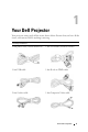 1 Your Dell Projector Your projector comes with all the items shown below. Ensure that you have all the items, and contact Dell if anything is missing. Package Contents 1.8m power cord (3.0m in Americas) 1.8m VGA cable (D-sub to D-sub) 1.8m USB cable 1.8m D-sub to YPbPr cable 2.0m S-video cable 1.