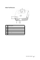 3 Keystone adjustment Press to adjust image distortion caused by tilting the projector. (±40 degrees) 4 Resync Press to synchronize the projector to the input source. Resync does not operate if the on-screen display (OSD) is displayed. 5 Menu Press to activate the OSD. Use the directional keys and Menu button to navigate through the OSD. 6 TEMP warning light • A solid orange TEMP light indicates that the projector has overheated. The display automatically shuts down.