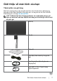 Giới thiệu về màn hình của bạn Thành phần của gói hàng Màn hình của bạn được vận chuyển kèm theo các linh kiện được liệt kê trong bảng dưới đây. Nếu thiếu bất kỳ linh kiện nào, vui lòng liên hệ với Dell. Để biết thêm thông tin, vui lòng Liên hệ với Dell. LƯU Ý: Một số linh kiện là không bắt buộc và có thể không được gửi kèm với màn hình của bạn. Một số tính năng có thể không có sẵn ở một số quốc gia.