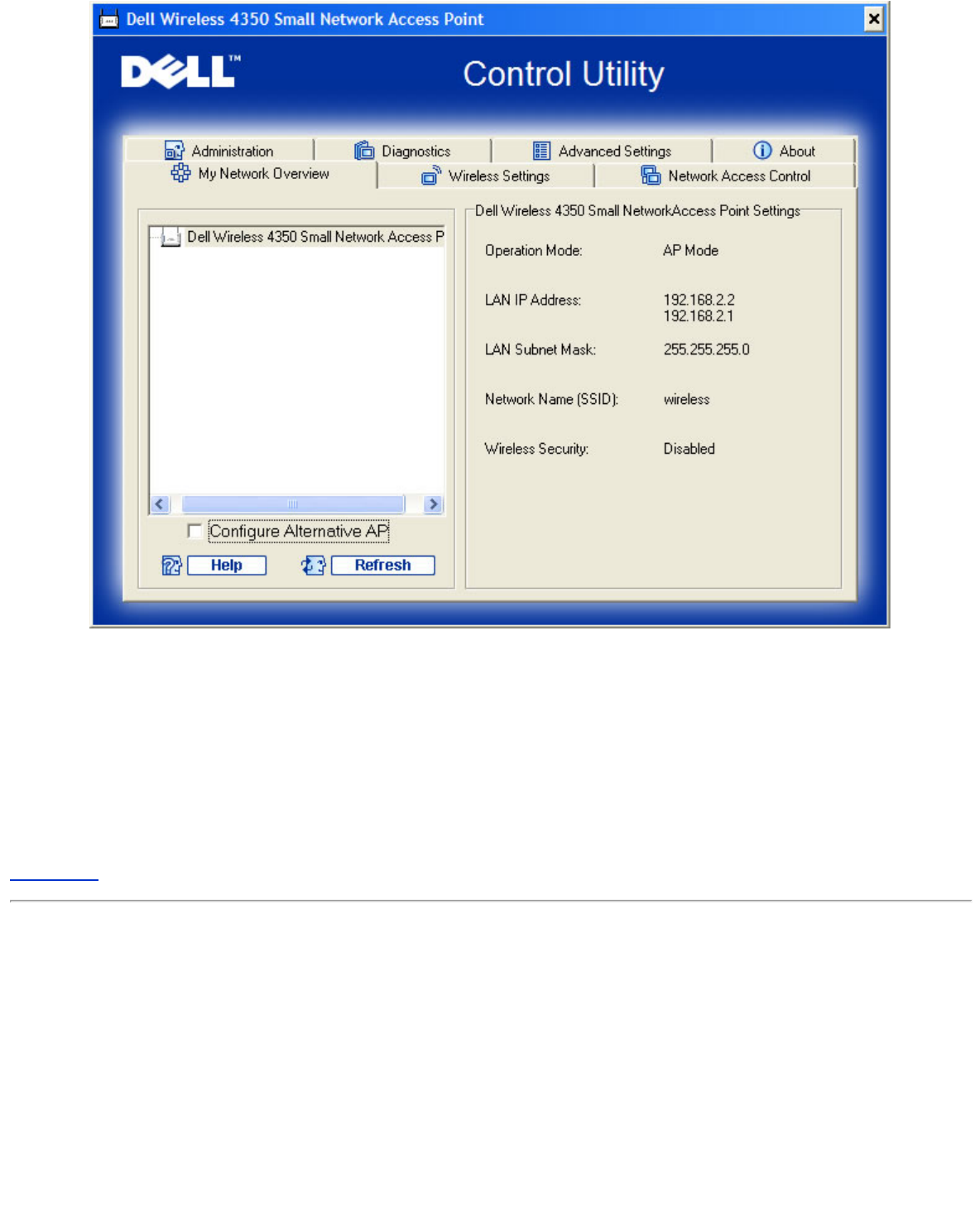 The Control Utility allows the user to manage multiple Dell Wireless 4350 Small Network Access Points on the network by allowing