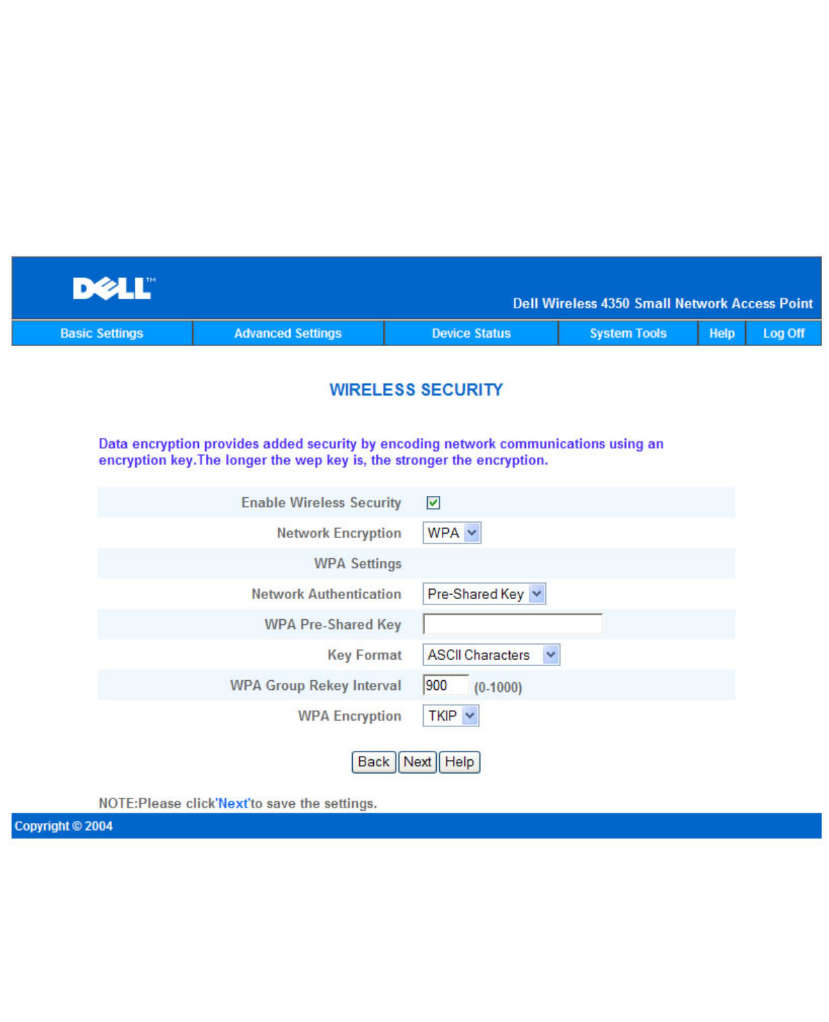 letter, number, or symbol). Select the proper format for your key. If your wireless client(s) only support one of the two formats, be sure