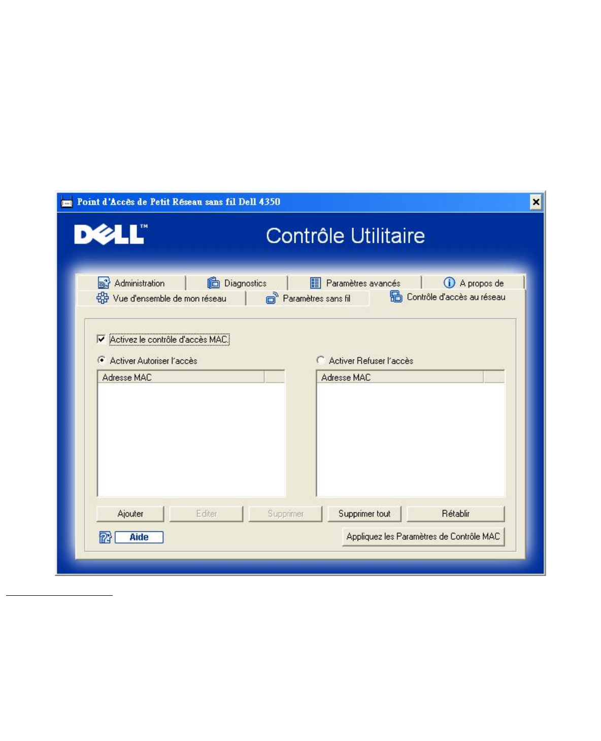 Petit Réseau sans fil Dell 4350 à partir de l’adresse MAC du système du client. Le paramètre par défaut permet à n’importe quel