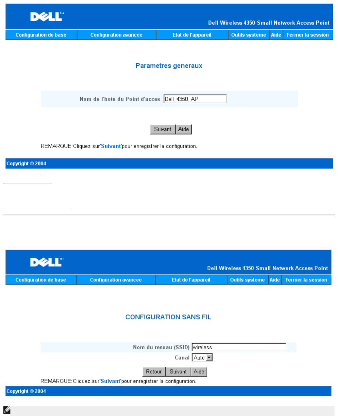 Le nom d'hôte du PA est le nom de réseau que le Point d'Accès de Petit Réseau sans fil Dell 4350 aura sur un réseau.