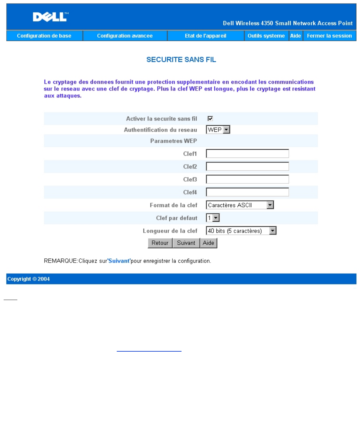 Le Point d'Accès de Petit Réseau sans fil Dell 4350 offre à la fois le mode PSK pour exécuter le WPA et l'authentification WPA avec