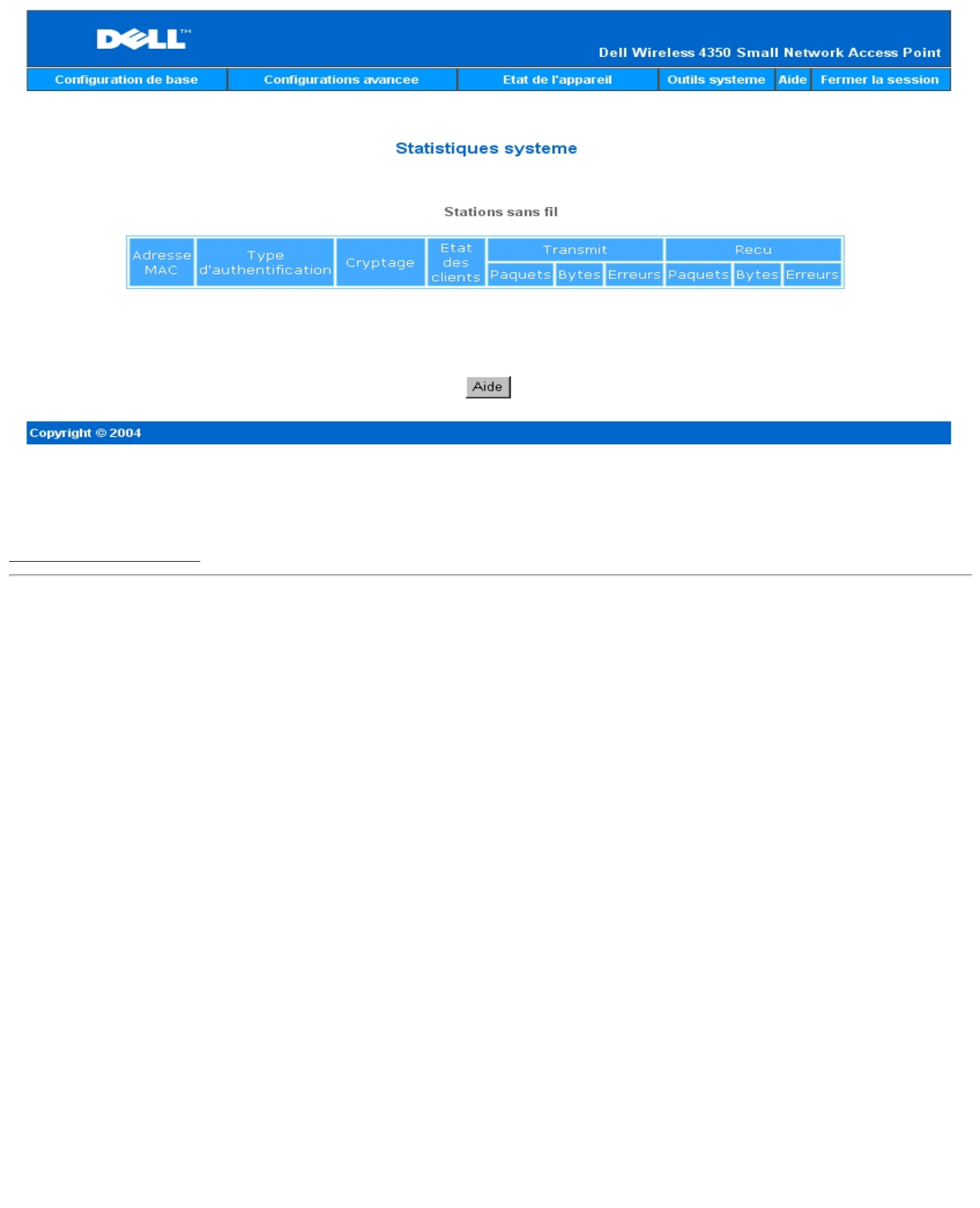 La table des statistiques du système affiche des informations de diagnostic sur toutes les stations sans fil actuellement connectées au
