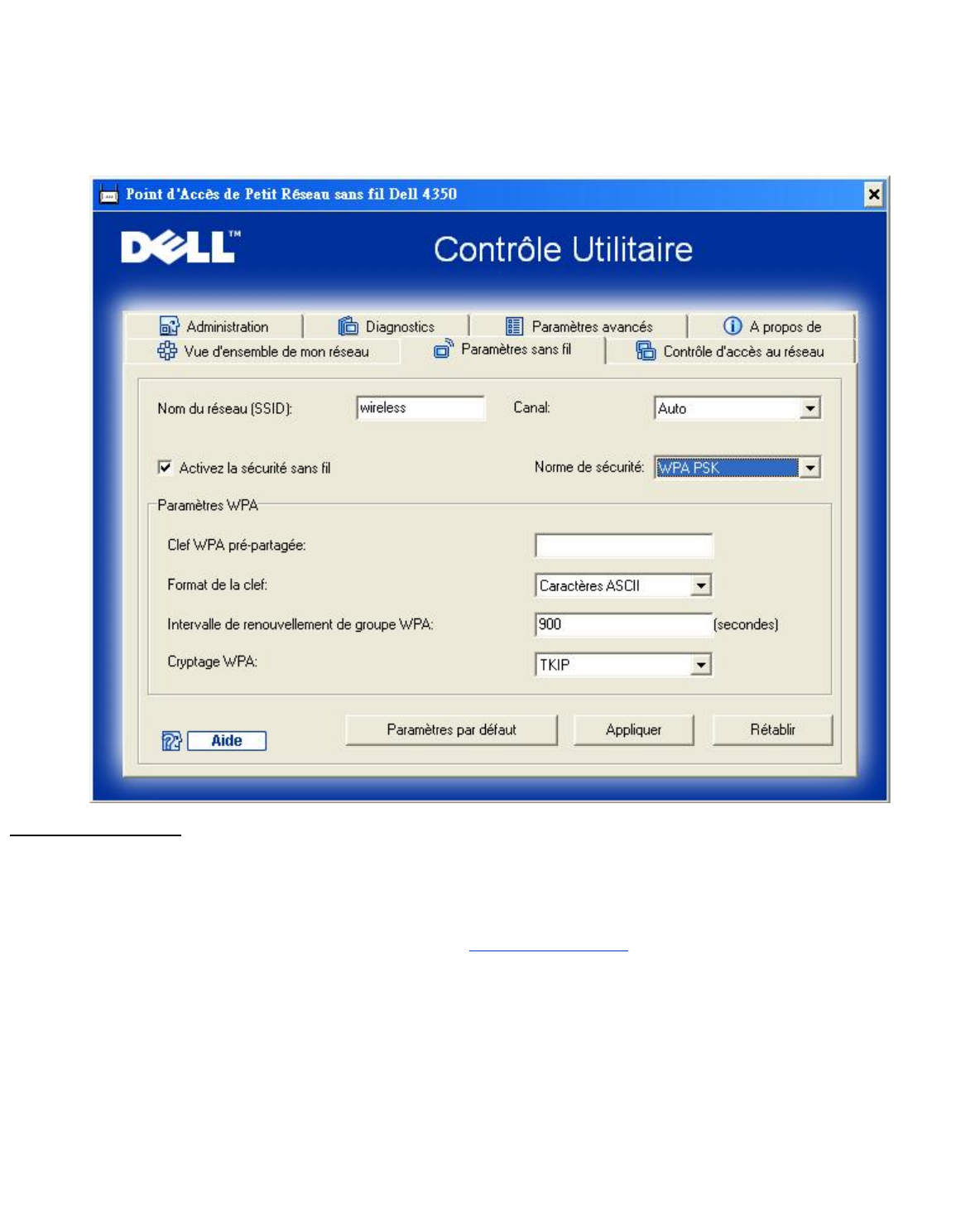 Paramètres sans fil WPA-PSK