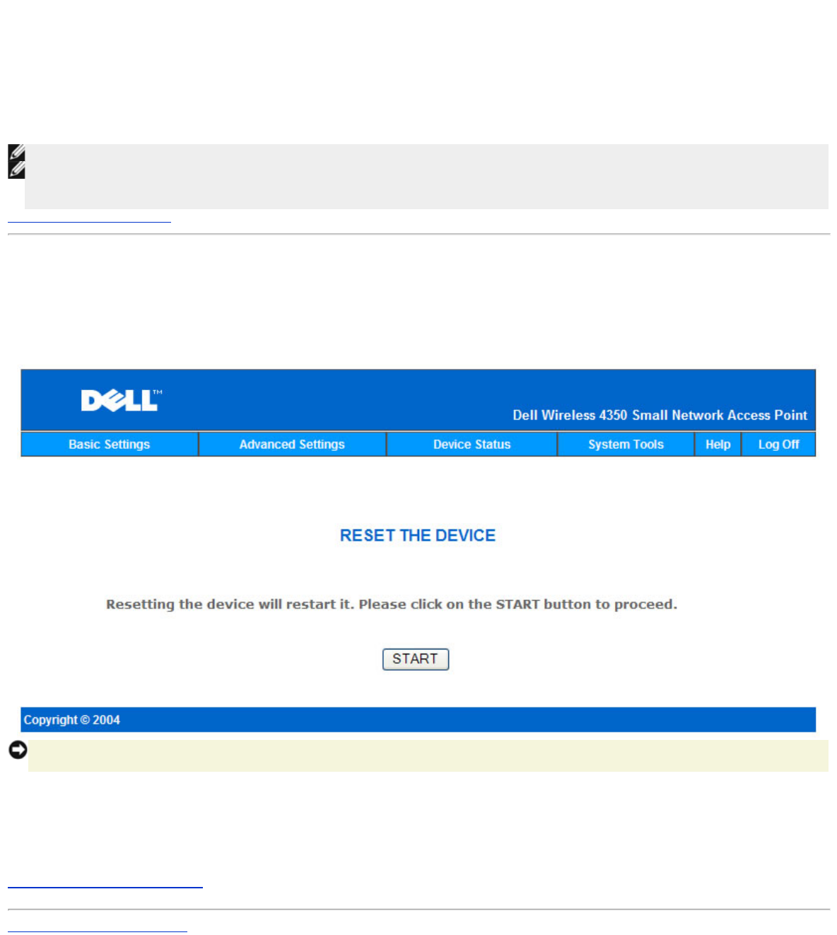 Cliquez sur Démarrer pour réiniatiliser le Point d'Accès de Petit Réseau sans fil Dell 4350 sur ses paramètres actuels du microcode. Le