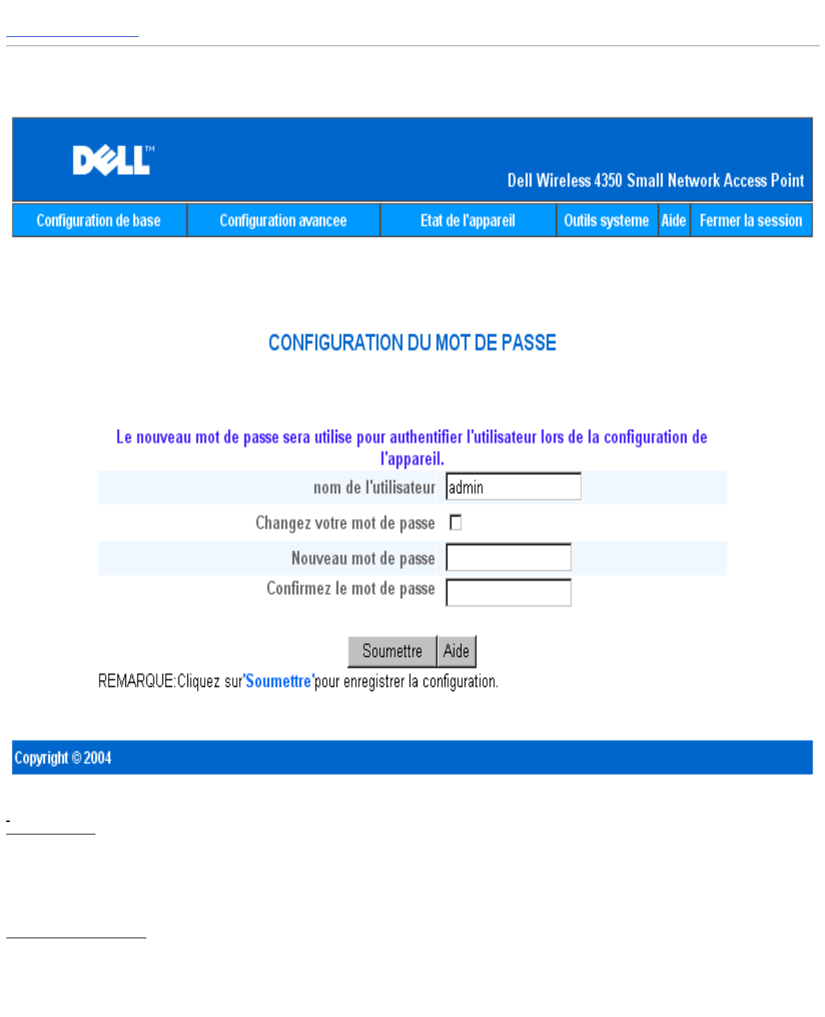 Cette configuration active la transmission de paquets de balise à partir du Point d'Accès de Petit Réseau sans fil Dell 4350 vers le réseau sans fil. Les paquets de balise