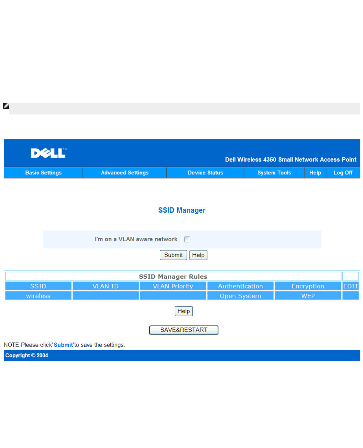 - Advanced Settings: Dell Wireless 4350 Small Network Access Point User's Guide