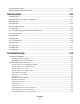 Contents Safety information...........................................................................11 Learning about the printer.............................................................13 Finding information about the printer........................................................................................................................13 Printer configurations.......................................................................................................................................