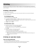 This chapter covers printing, printer reports, and job cancelation. Selection and handling of paper and specialty