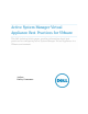 Active System Manager Virtual Appliance Best Practices for VMware This document is for informational purposes only and may contain typographical errors and technical inaccuracies. The content is provided as is, without express or implied warranties of any kind. © 2013 Dell Inc. All rights reserved. Dell and its affiliates cannot be responsible for errors or omissions in typography or photography. Dell and the Dell logo are trademarks of Dell Inc.