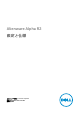 メモ、注意、警告 メモ: メモでは、コンピュータを使いやすくするための重要な情報を説明してい ます。 注意: 注意では、ハードウェアの損傷やデータの損失の可能性を示し、その問題 を回避するための方法を説明しています。 警告: 警告では、物的損害、けが、または死亡の原因となる可能性があることを 示しています。 © 2016 Dell Inc. 無断転載を禁じます。この製品は、米国および国際著作権法、ならびに米国およ び国際知的財産法で保護されています。Dell、および Dell のロゴは、米国および / またはその他 管轄区域における Dell Inc. の商標です。本書で使用されているその他すべての商標および名称 は、各社の商標である場合があります。 2016-04 Rev.