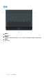 音效 表 9. 音效規格 說明 值 控制器 Realtek ALC3281-CG 立體聲轉換 支援 內部介面 高傳真音效介面 外接式介面 • • 喇叭 2 内置扬声器放大器 支援 外部音量控制 鍵盤快捷鍵控制項 通用音效插孔 HDMI 2.0 連接埠 喇叭輸出: 平均 2W 峰值 2.5 W 超低音喇叭輸出 不支援 麥克風 攝影機組件中的數位陣列麥克風 存放時 您的電腦支援下列其中一種組態: 一個 M.2 2230/2280 固態硬碟 兩個 M.2 2230/2280 固態硬碟 一個 M.2 2230 和一個 M.2 2280 固態硬碟 • • • 電腦的主要磁碟機依儲存裝置組態而有所不同。適用於配備 M.2 磁碟機的電腦,M.2 磁碟機為主要磁碟機 表 10. 儲存裝置規格 儲存類型 介面類型 容量 M.2 2280 固態硬碟 SATA AHCI,最高 6 Gbps 最高 2 TB M.2 2230/2280 固態硬碟 PCIe Gen3.0x4 NVMe,最高 32 Gbps 最高 2 TB 鍵盤 表 11.