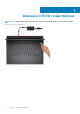 1 Alienware m15 R2:n määrittäminen HUOMAUTUS: Tämän asiakirjan kuvat saattavat poiketa tietokoneesi ulkonäöstä, tilaamastasi kokoonpanosta riippuen. Kytke verkkolaite ja paina virtapainiketta.