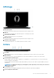 Table des matières 1 Configuration de votre Alienware m15 R2........................................................................................4 2 Vues de l’ordinateur Alienware m15 R2...........................................................................................5 Gauche....................................................................................................................................................................................5 Droite....................................