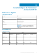 Tableau 5. Ports et connecteurs externes(suite) Description Valeurs Vidéo • • • Lecteur de carte mémoire Non pris en charge Port de connexion Un port graphique externe REMARQUE : Ce port graphique externe est compatible avec l’amplificateur graphique Alienware. Port de l’adaptateur secteur Un DC-in de 7,4 mm x 5,1 mm Sécurité Un emplacement pour câble de sécurité (en coin) Un port HDMI 2.0 Un port mini DisplayPort 1.4 Un port Thunderbolt 3 (USB 3.1 2ᵉ génération) Tableau 6.