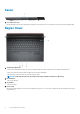 Keyboard Tabel 11. Spesifikasi keyboard Deskripsi Nilai Tipe Keyboard lampu latar RGB Tata letak QWERTY Jumlah tombol • • • Ukuran X= 19,05 mm pitch tombol Amerika Serikat dan Kanada: 83 tombol Inggris: 87 keys Jepang: 107 tombol Y= 19,05 mm pitch tombol Tombol pintasan Beberapa tombol pada keyboard Anda dibubuhi dua simbol. Tombol-tombol ini dapat digunakan untuk mengetik karakter alternatif atau untuk menjalankan fungsi sekunder.