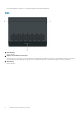 Tabliczka dotykowa Tabela 13. Dane techniczne tabliczki dotykowej Opis Wartości Rozdzielczość: W poziomie 1217 W pionie 681 W poziomie 105 mm (4,13") W pionie 60 mm (2,36.) Wymiary: Gesty tabliczki dotykowej Więcej informacji na temat gestów tabliczki dotykowej w systemie Windows 10 zawiera artykuł 4027871 w bazie wiedzy Microsoft pod adresem support.microsoft.com. Zasilacz Tabela 14.