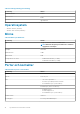 Tabell 5. Externa portar och kontakter(fortsättning) Beskrivning Värden OBS: Denna externa grafikdisplayport är kompatibel med Alienware Graphics Amplifier. Nätadapterport En 7,4 mm x 5.1 mm DC-in Security (säkerhet) Ett säkerhetskabeluttag (kilformat) Tabell 6. Interna portar och kontakter Beskrivning Värden Internt: M.2 • • En M.2-kortplats för 2230/2280 SATA AHCI/PCIe, NVMehalvledarenhet En M.