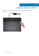1 Installera Alienware m15 R2 OBS: Bilderna i det här dokumentet kan skilja från din dator beroende på konfigurationen du beställde. Anslut nätadaptern och tryck på strömbrytaren.