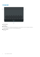 Tabell 13. Specifikationer för pekplatta(fortsättning) Beskrivning Värden Vågrät 1217 Lodrät 681 Vågrät 105 mm (4,13 tum) Lodrät 60 mm (2,36 tum) Mått: Fingerrörelser på styrplattan För mer information om pekplattans gester för Windows 10, se Microsoft Knowledge Base-artikeln 4027871 at support.microsoft.com. Nätadapter Tabell 14.
