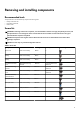 Table 1. Screw list (continued) Component Secured to Screw type Quantity Keyboard-controller board Palm-rest assembly M2x1.9 2 Right I/O-board cable • • M2x3 2 Right I/O-board Palm-rest assembly M2x3 2 M.2 solid-state drive (SSD) frame System board M2x4.5 3 Fan and heat-sink assembly Palm-rest assembly M2x4.