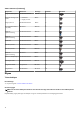 Tabell 11. Lysdiodkoder (fortsättning) Diagnostikindikatorkoder Problembeskrivning 3,6 System-BIOS Flash ofullständig 3,7 Fel på Management Engine (ME) Kamerastatuslampa: Anger om kameran används. • • Fast sken – kameran används. Av – kameran används inte. Caps Lock-lampan: Anger om Caps Lock är aktiverat eller inaktiverat. • • Fast sken – Caps Lock aktiverat. Av – Caps Lock inaktiverat.