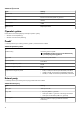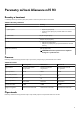 Tabulka 5. Externí porty (pokračování) Popis Hodnoty Grafický port • • • Čtečka paměťových karet Jeden slot karty microSD Dokovací port Jeden port na externí grafickou kartu POZNÁMKA: Tento port na externí grafickou kartu je kompatibilní s grafickým akcelerátorem Alienware. Port napájecího adaptéru Jeden port 7,4 mm x 5,1 mm E4 pro vstup stejnosměrného napájení Zabezpečení Jeden slot bezpečnostního kabelu (klínový) Jeden port HDMI 2.0 Jeden port mini DisplayPort 1.