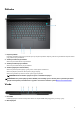 Obsah Kapitola 1: Nastavení počítače Alienware m15 R3................................................................................. 4 Kapitola 2: Pohledy na zařízení Alienware m15 R3................................................................................ 5 Displej................................................................................................................................................................................... 5 Vlevo..................................................